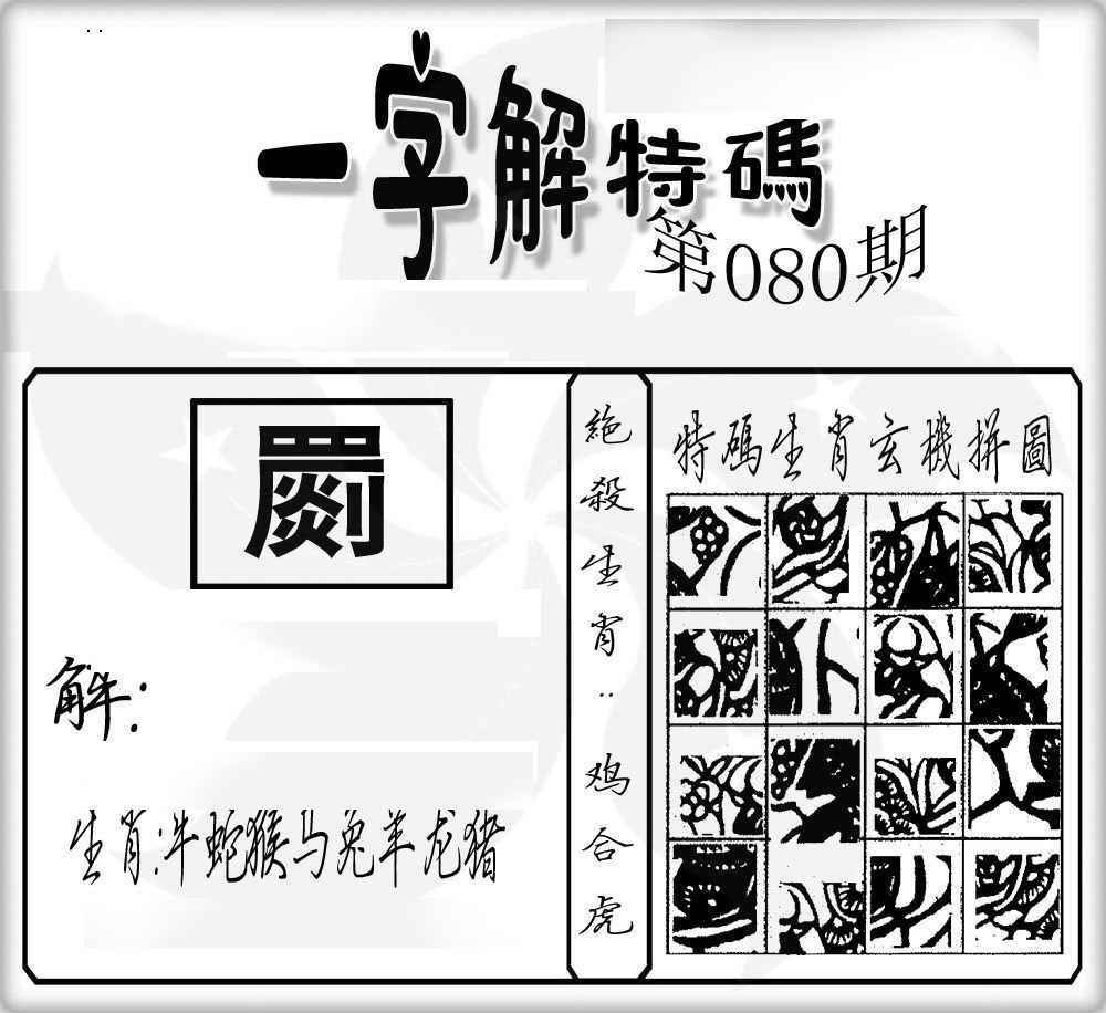 | 主题 :080期:一字解特码 |
