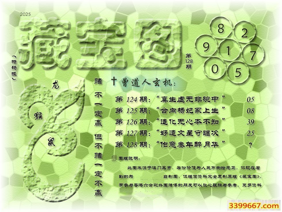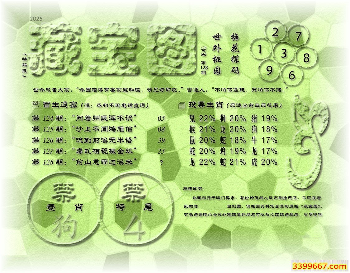 128期藏寶圖 新:作意叁年醉月华 老:前山急雨过溪来 禁:狗 禁:4尾