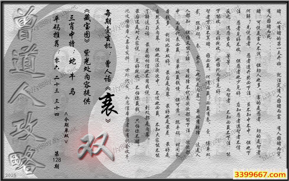 主题 :128期藏寶圖 新:作意叁年醉月华 老:前山急雨过溪来 禁:狗 禁:4尾