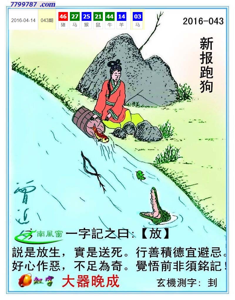 主题 :093期:新版跑狗一字記之曰【送】 玄機測字:【精】